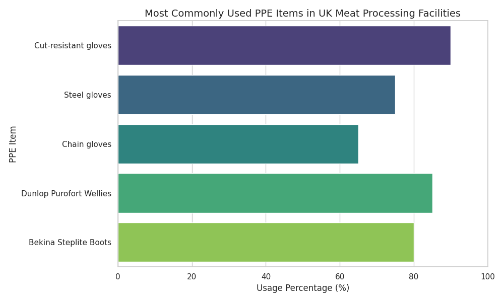 Protective gear is the backbone of abattoir safety. But which items are most commonly used across UK meat facilities? This chart breaks it down:
