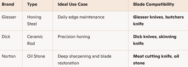 Here’s a comparison of top-rated sharpeners used across the UK meat industry:
