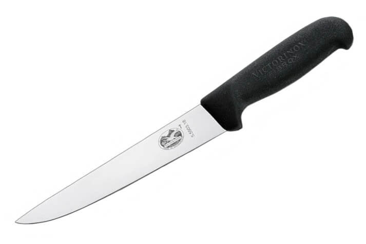 Victorinox Boning/Sticking kinfe. Black ergonomic non slip handle. 7” straight stiff blade